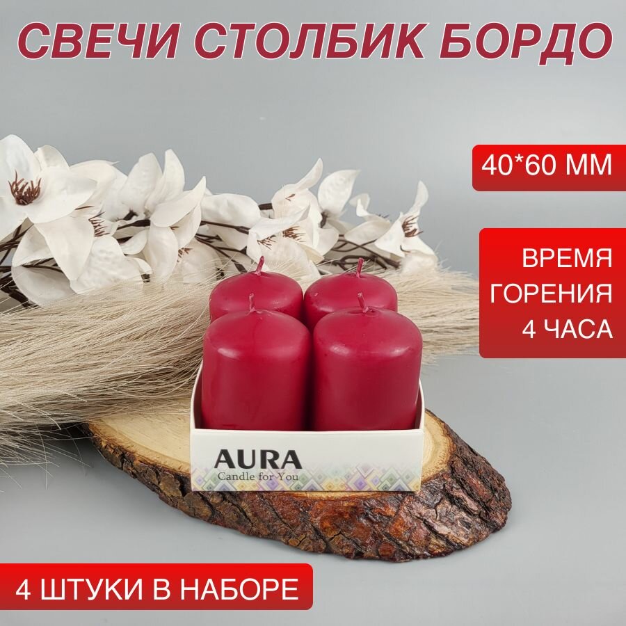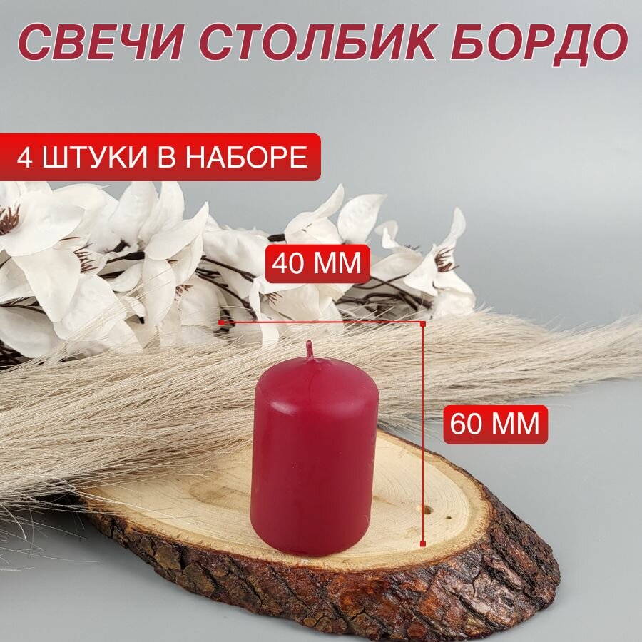 Свечи Столбик 60х40 мм, 4 шт, бордо