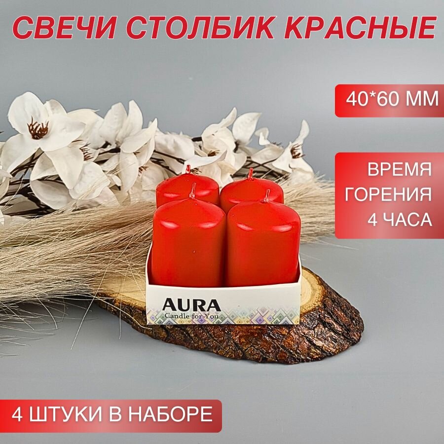 Свечи Столбик 60х40 мм, 4 шт, красный