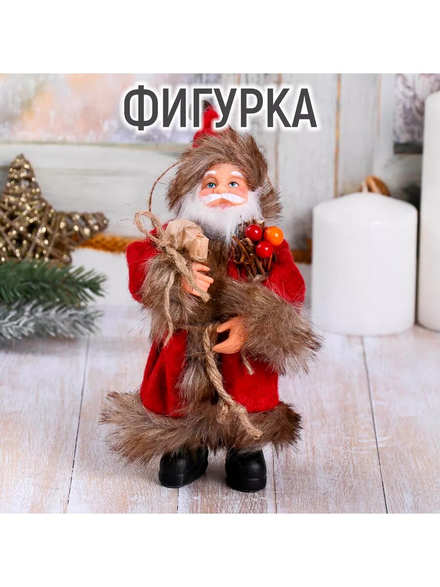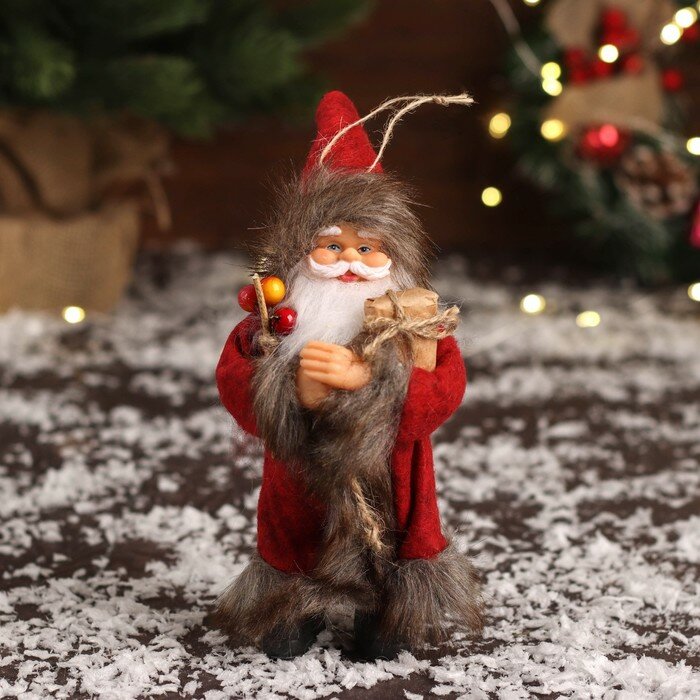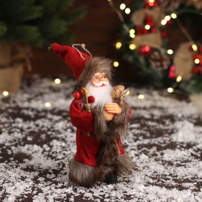 Дед Мороз в красной шубке с хворостом 16 см 4316753 .