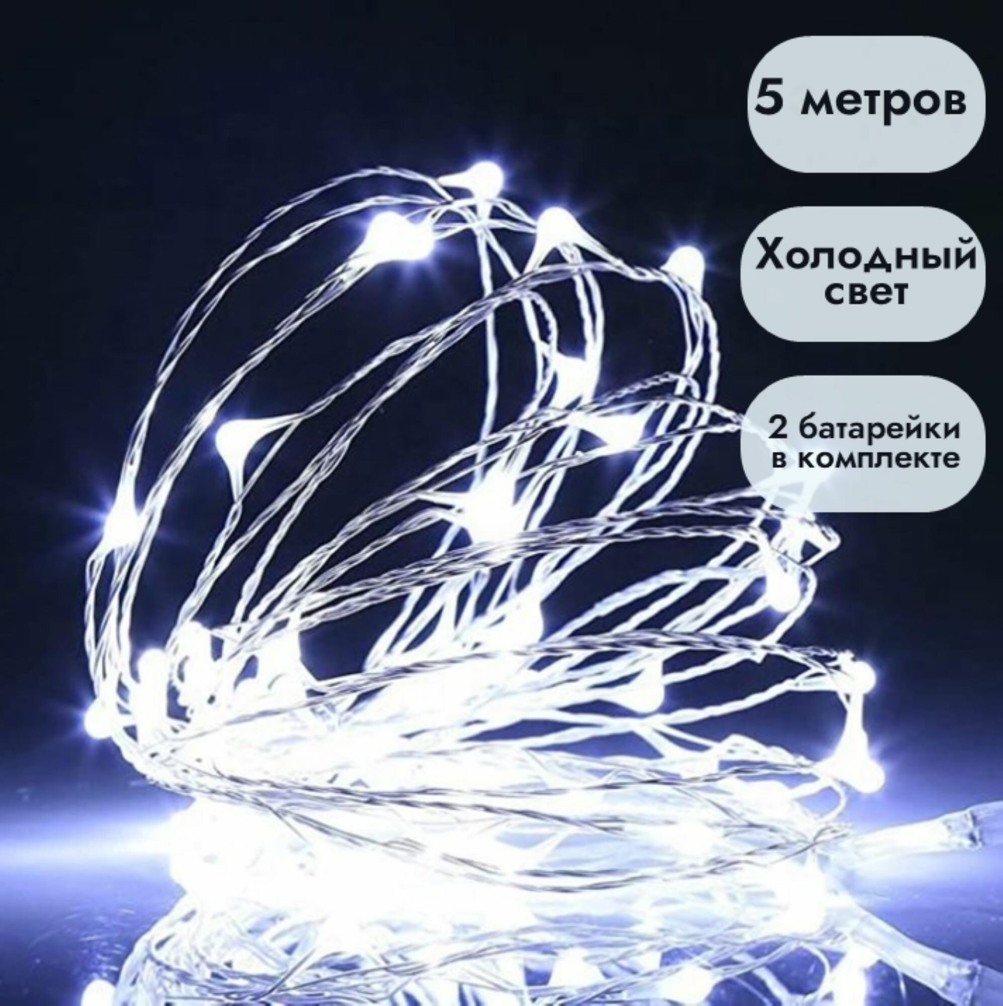 Гирлянда - нить на батарейках 5м белый свет интересное: