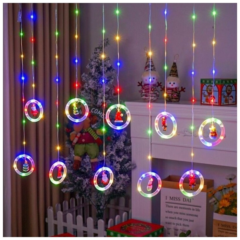 Новогодняя гирлянда штора фигурная/Разноцветная, гирлянда занавес, 3 м, 10 фигур, 8 режимов, 220В интересное: