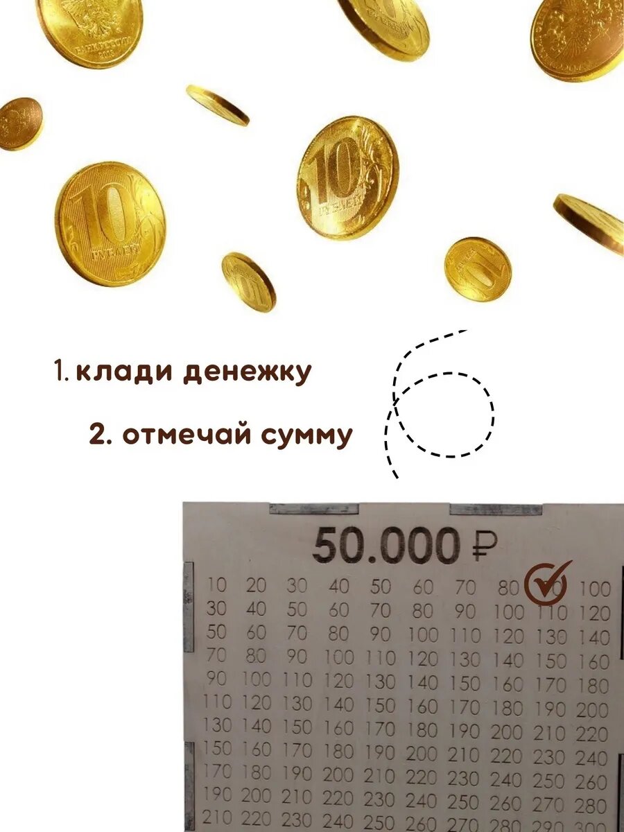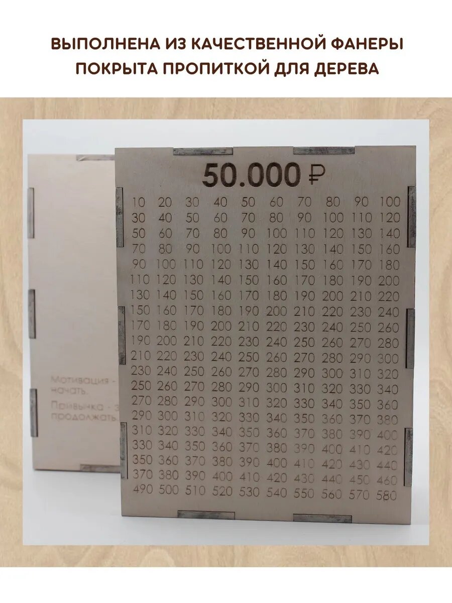 Копилка для денег SOK design по номерам 50 тысяч, копилка таблица