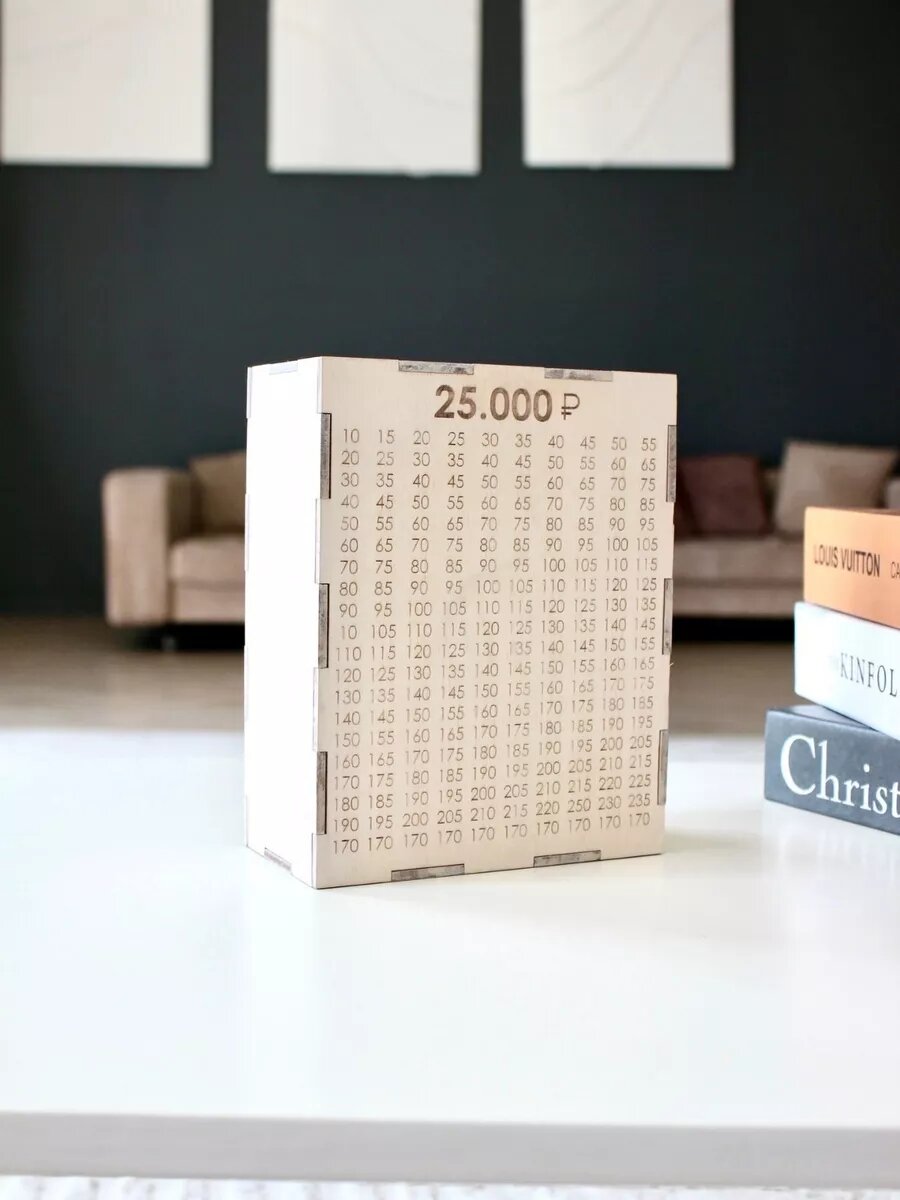 Копилка для денег по номерам в белом цвете на сумму 25 000 тысяч интересное:
