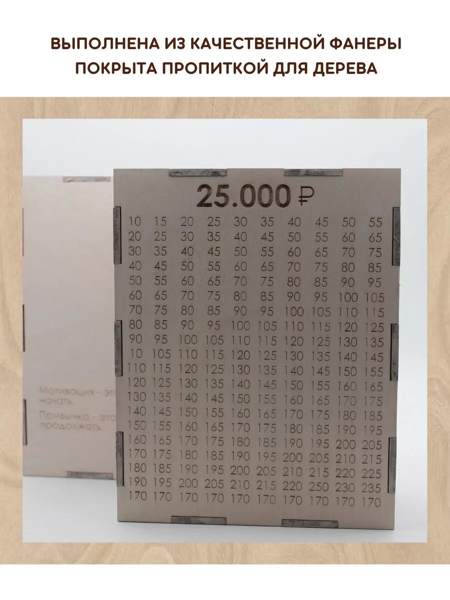 Копилка "Таблица" для денег в 25 000 рублей, копилка по номерам