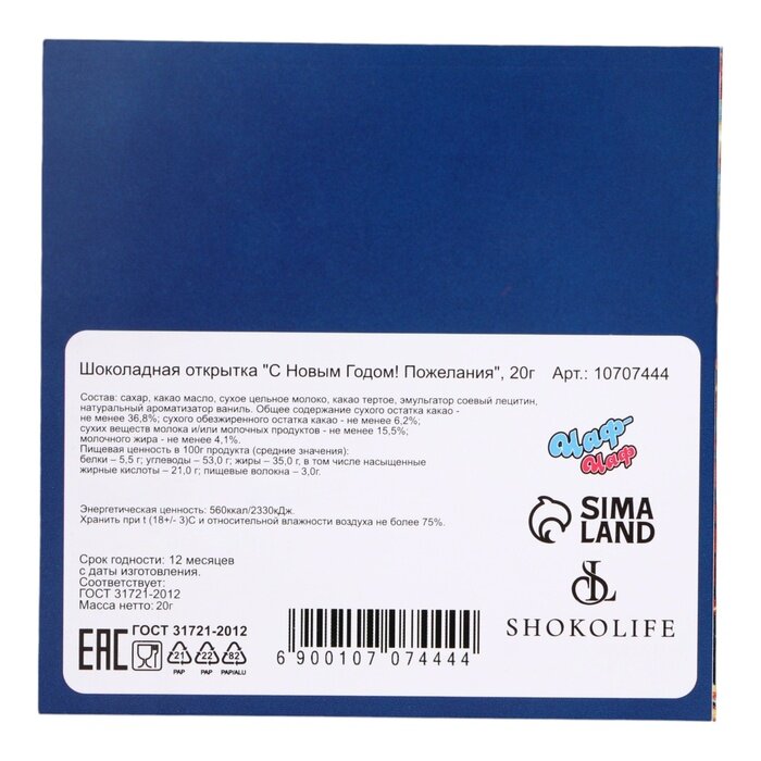 Шоколадная открытка "С Новым годом! Пожелания", 4 шт * 5 г интересное: