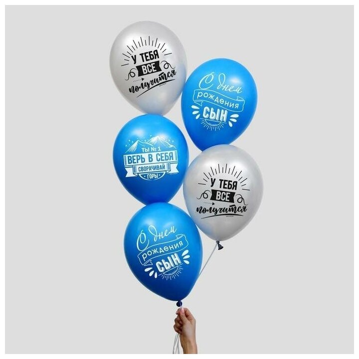 Воздушный шар латексный 12""Сворачивай горы, сын", 5 шт.