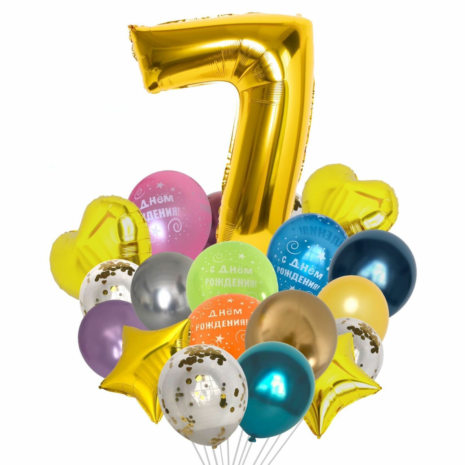 Купить Набор/букет воздушных шаров С днем рождения с цифрой "7" золото. 21 штука