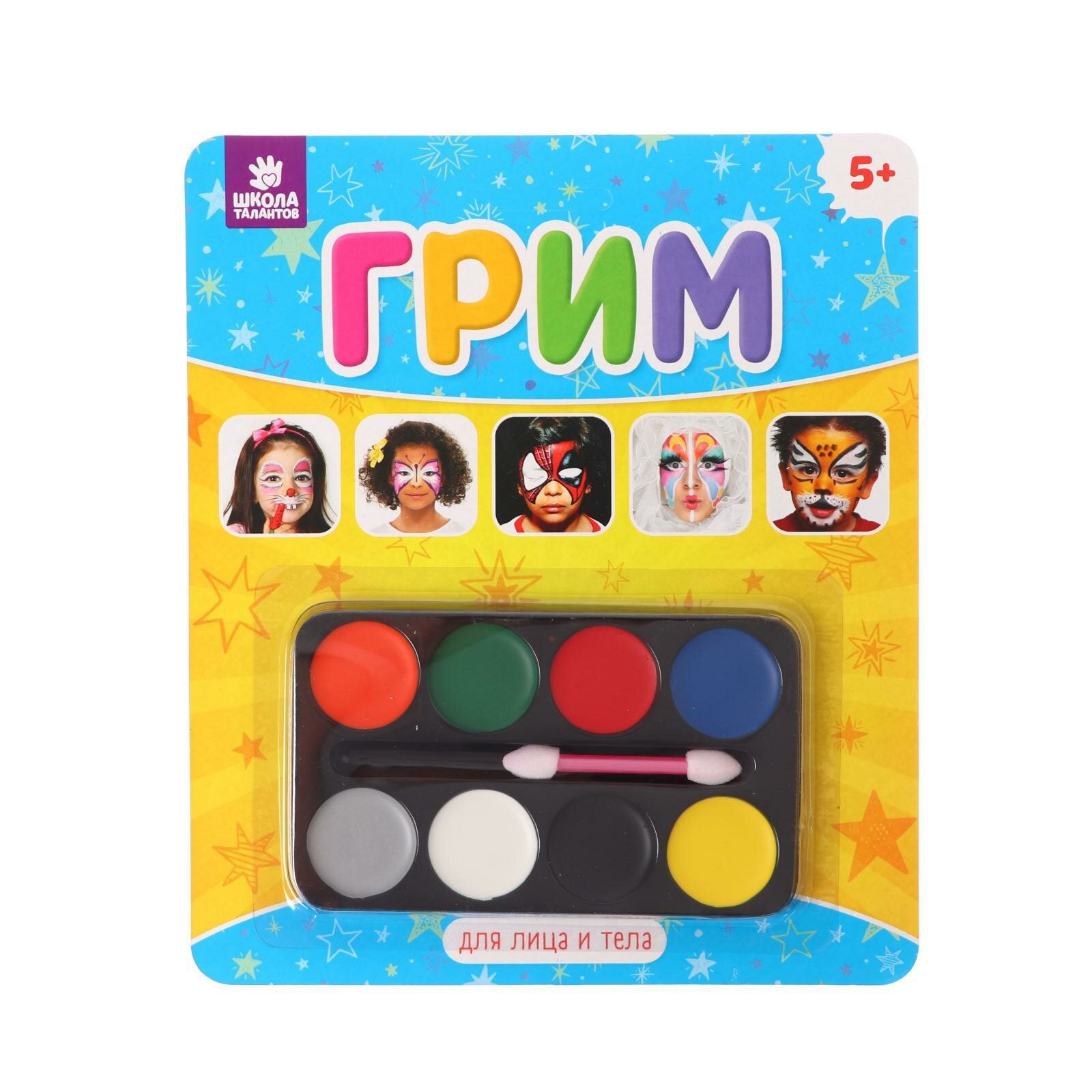 Купить Грим для лица и тела 8 цветов по 3 г, аппликатор, масляная основа, цвет микс, Школа талантов