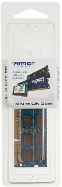 Оперативная память Patriot PSD34G13332S DDR3 - 1x 4ГБ 1333МГц, для ноутбуков (SO-DIMM), Ret