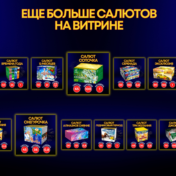 | Особенности фейерверка | вращающийся / высотный / красочная концовка / парковый |
