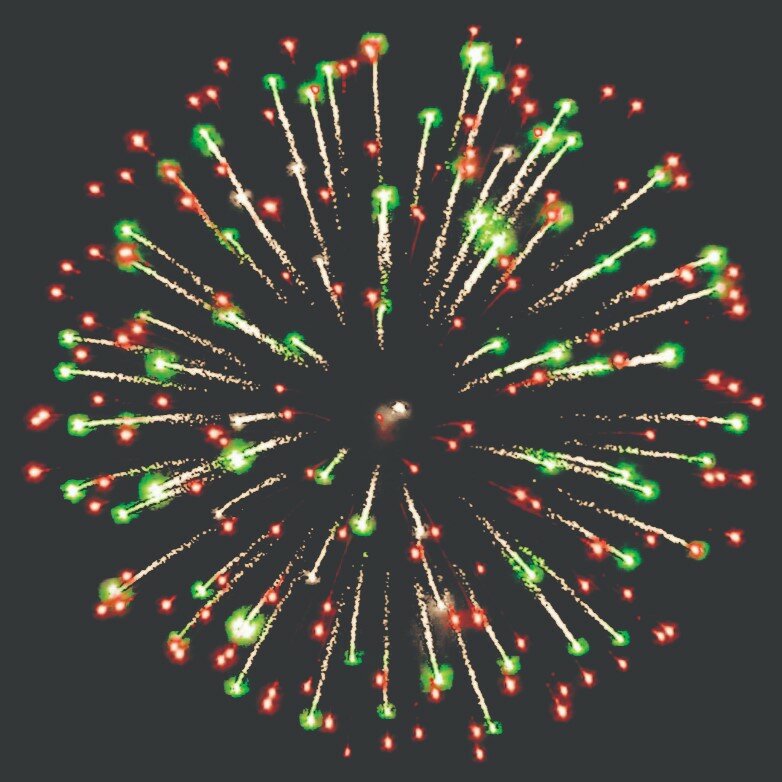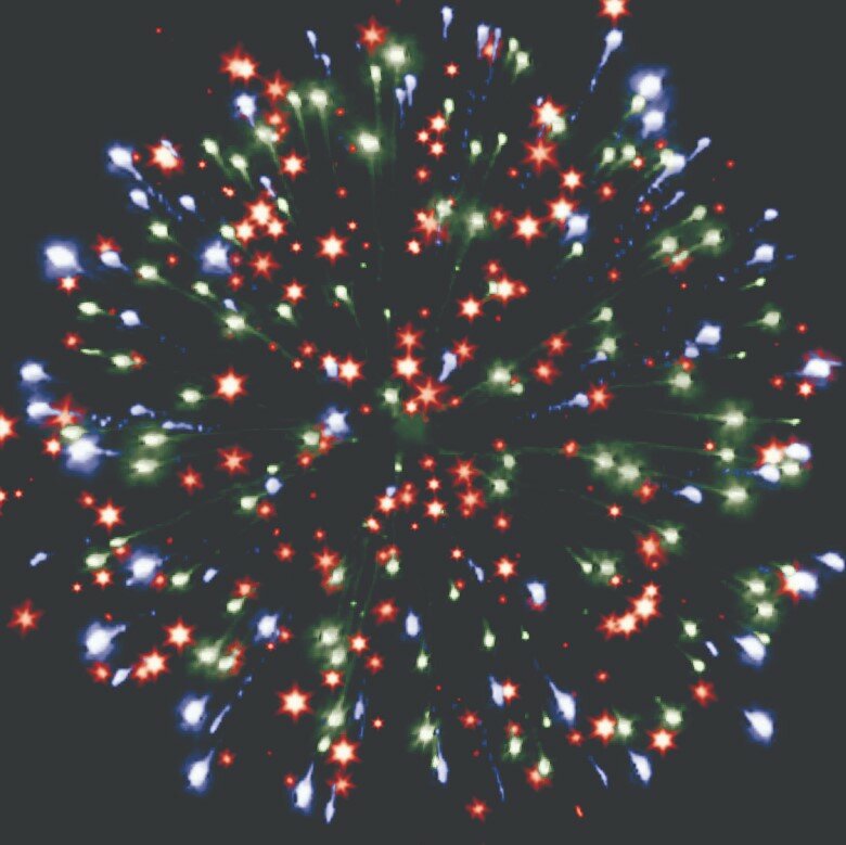 | Эффекты | 1. Разноцветные кометы разрываются сферами из красных и белых мерцающих огней. 2. Разноцветные кометы разрываются сферами из фиолетовых и зелёных мерцающих огней. 3. Разноцветные кометы разрываются сферами из трещащих огней. 4. Разноцветные кометы разрываются сферами из множества трещащих сфер. |