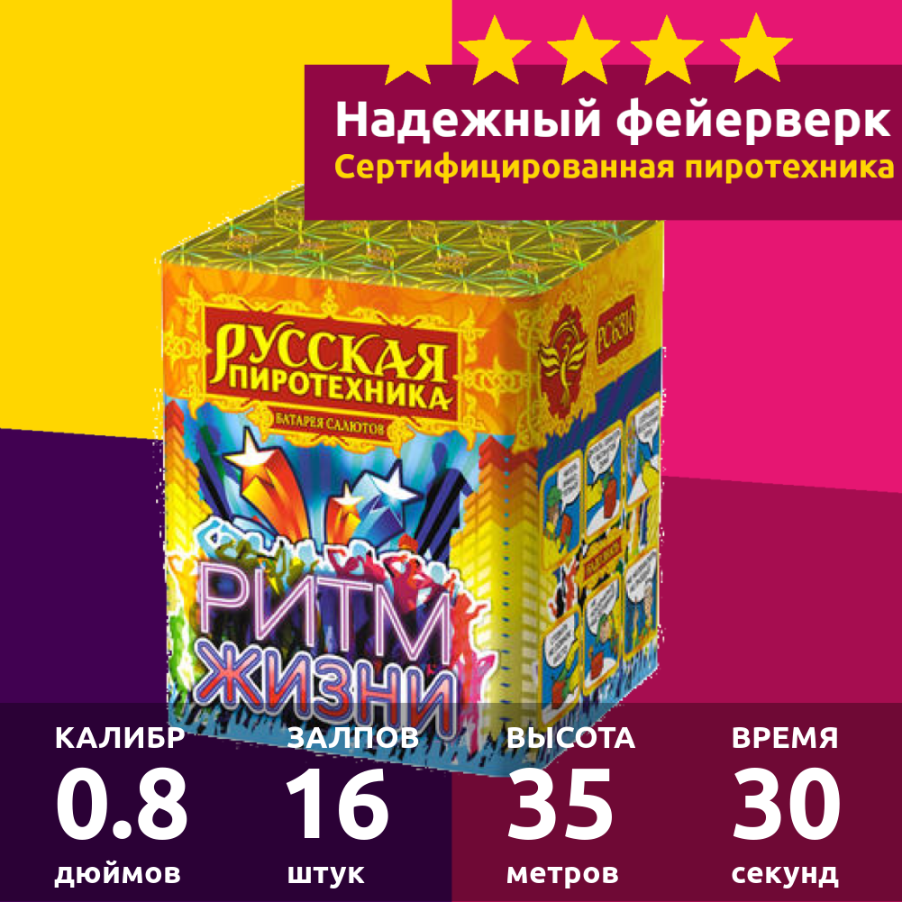Салюты и фейерверки РС6310 Ритм жизни 0,8"х 16 залпов Русская пиротехника интересное: