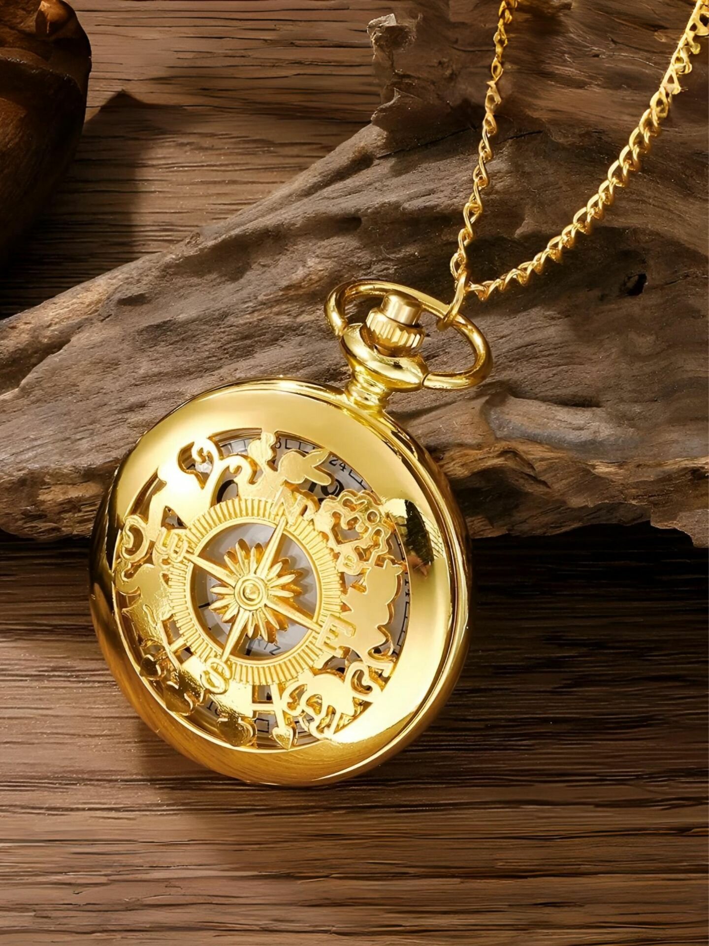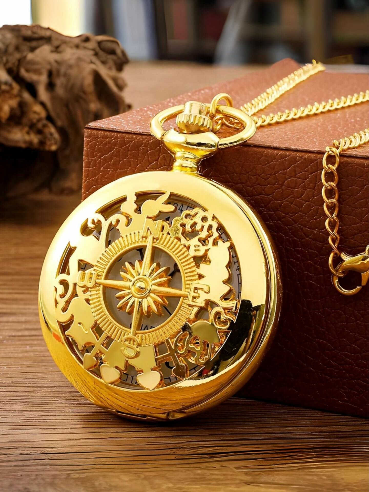 Карманные часы на цепочке Золотой компас / 4,5х4,5 см. Цепочка 80 см./ Цвет: золото