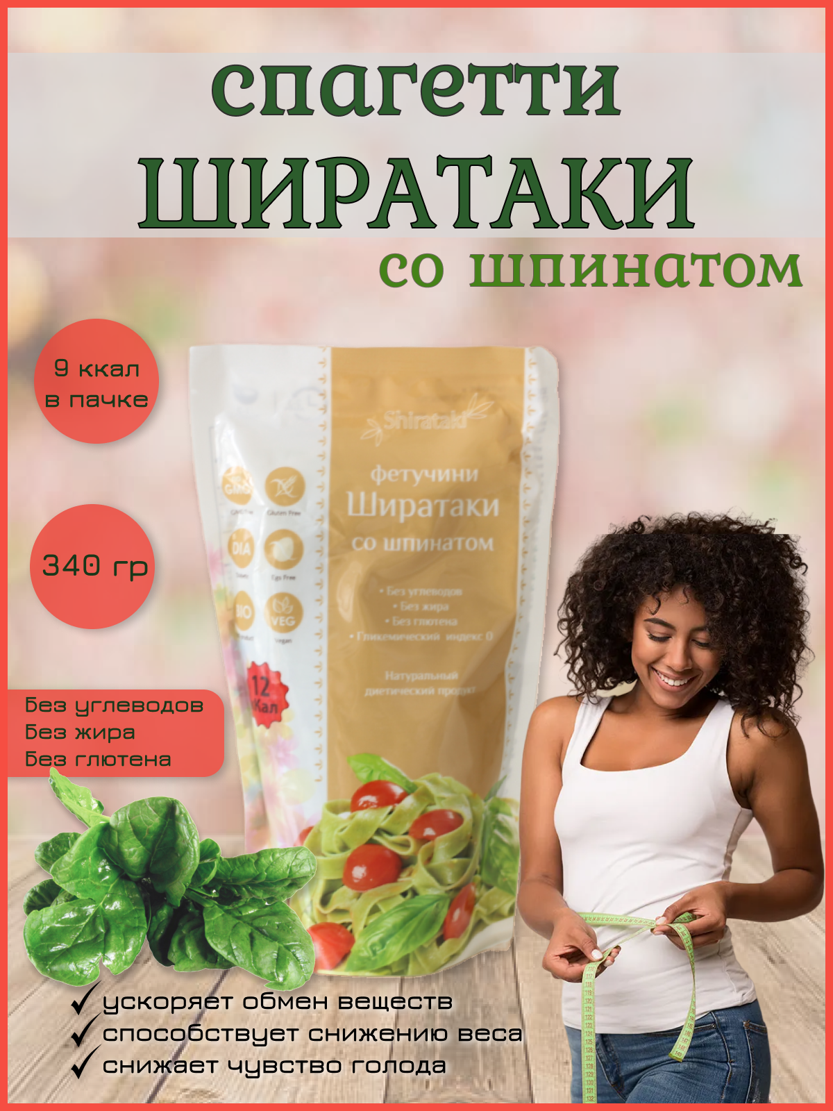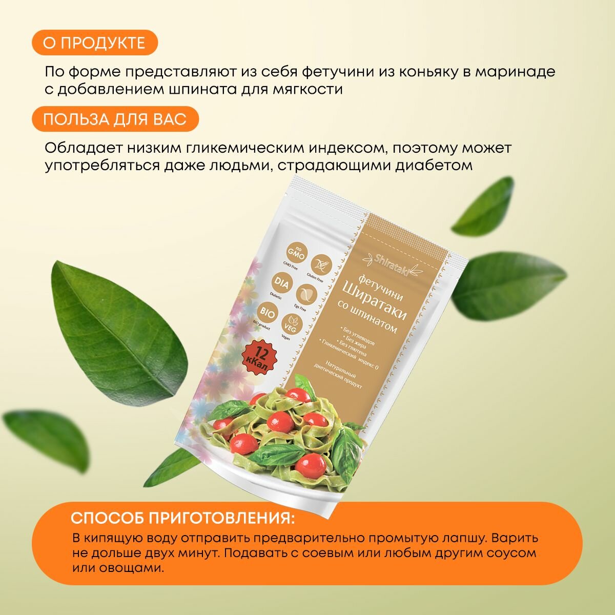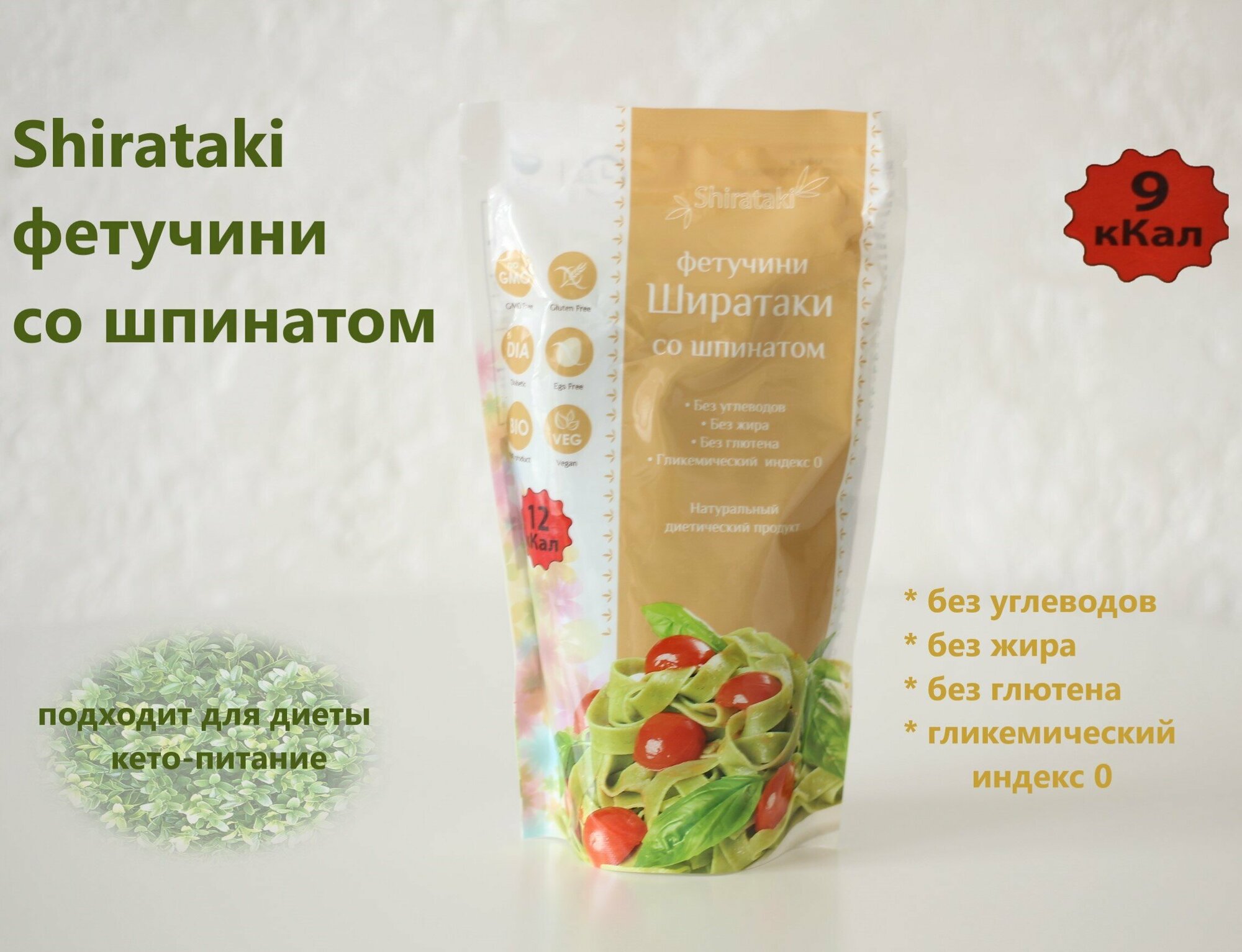 Фетучини со шпинатом, 340 г, Shirataki интересное: