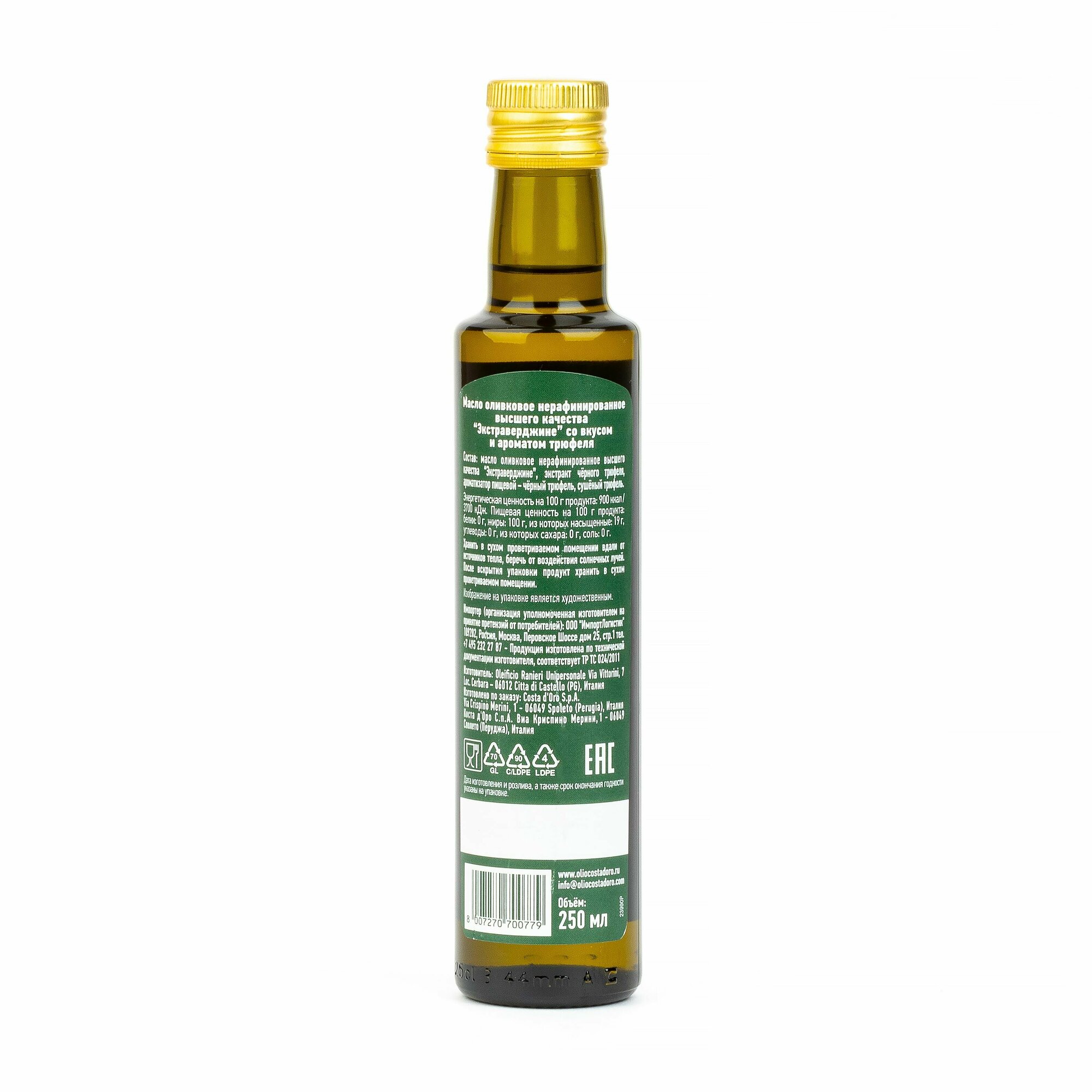 Масло оливковое COSTA D'ORO Extra Virgin нерафинированное высшего качества со вкусом и ароматом трюфеля 250 мл стеклянная бутылка интересное: