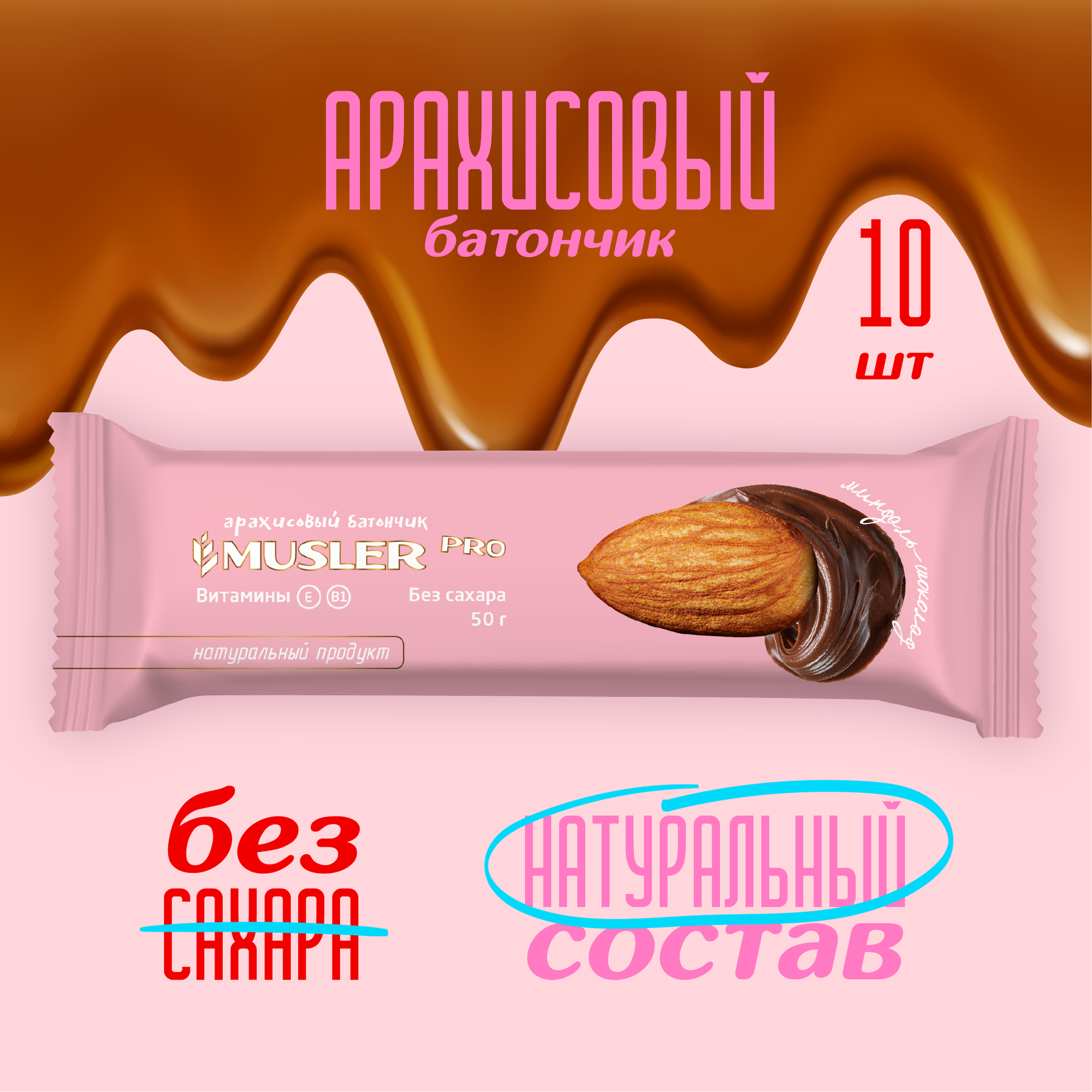 Купить Батончик арахисовый "Миндаль-шоколад" Musler PRO,50г, (10шт)