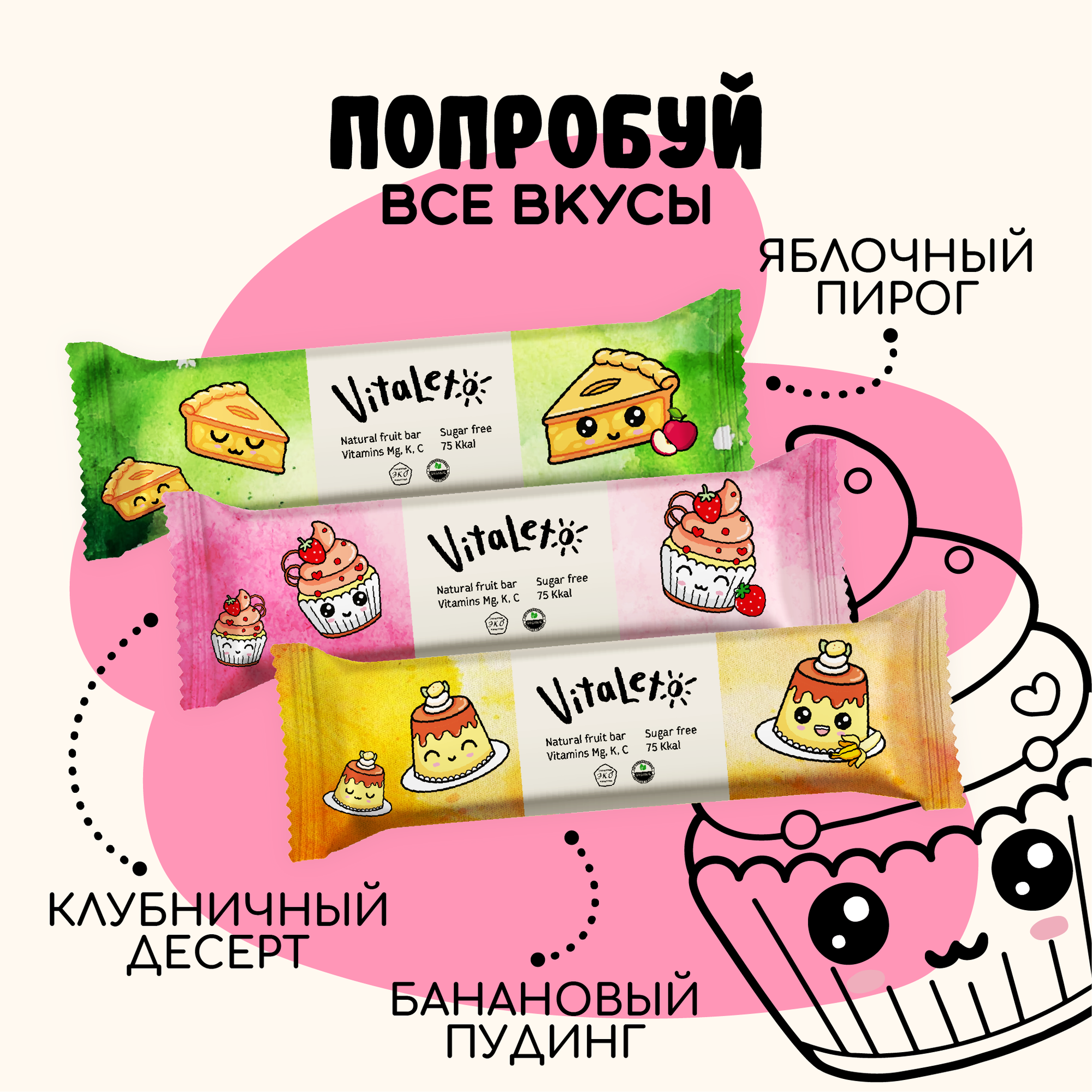 Батончик фруктовый без сахара Vitaleto "Клубничный десерт" 30г (12шт), Виталето