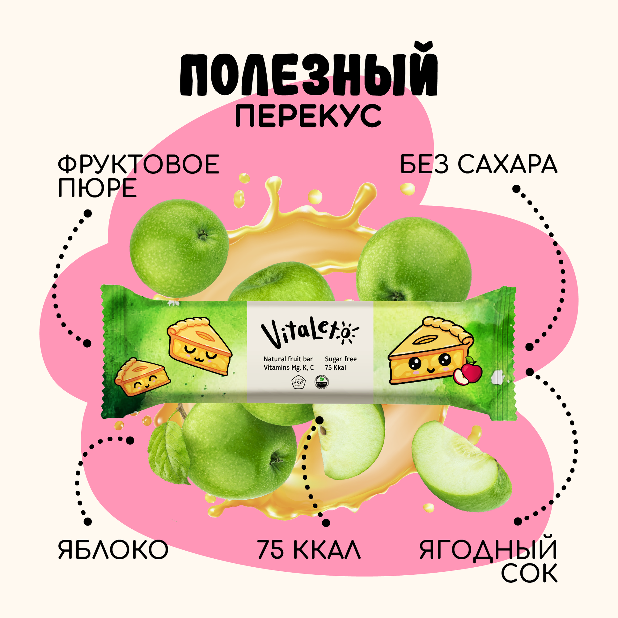 Купить Батончик фруктовый без сахара Vitaleto "Яблочный пирог" 30г (12шт), Виталето