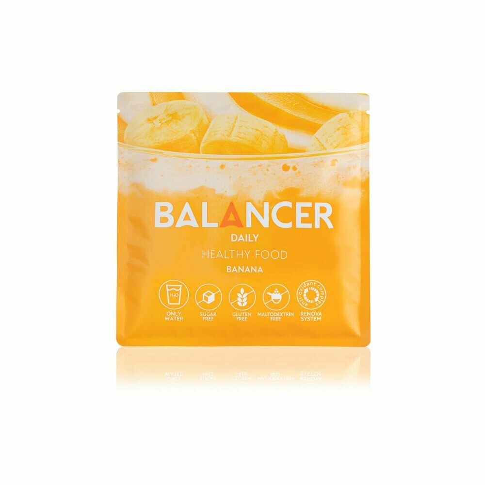 Коктейль BALANCER DAILY со вкусом «Банан». В упаковке: 10 саше по 52 г. Пищевой продукт диетического питания.