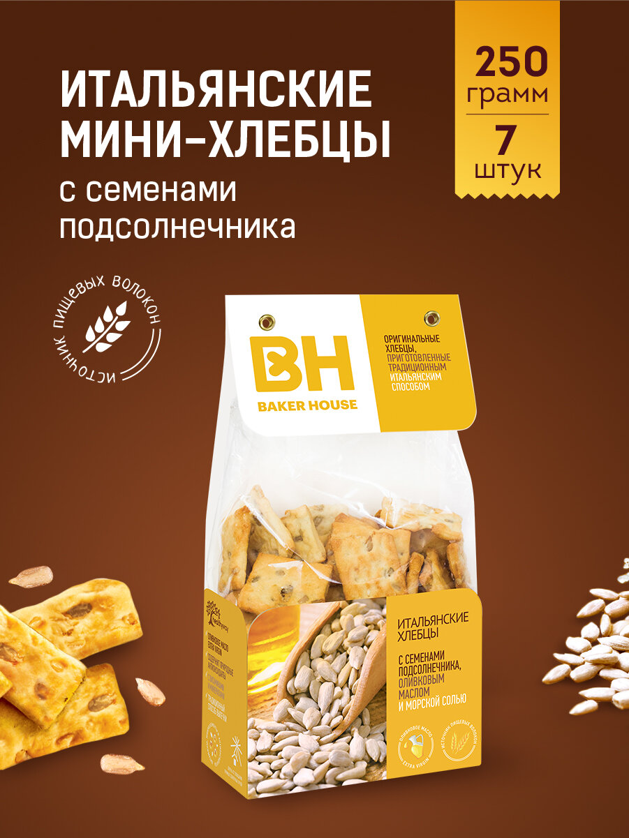 Купить Итальянские хлебцы Baker House с семенами подсолнечника оливковым маслом и морской солью 250 г