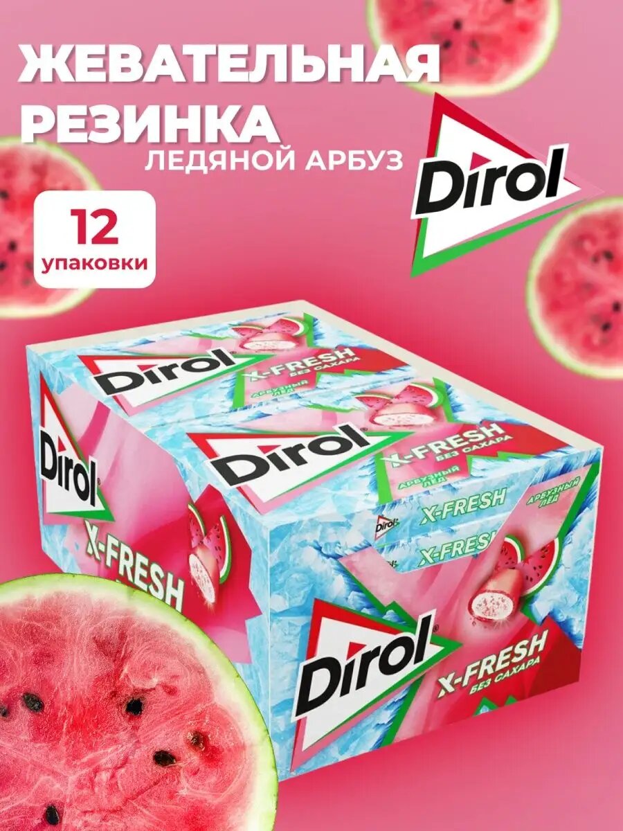 Купить Dirol X-Fresh Арбузный лед жевательная резинка без сахара, 12шт х 16 г