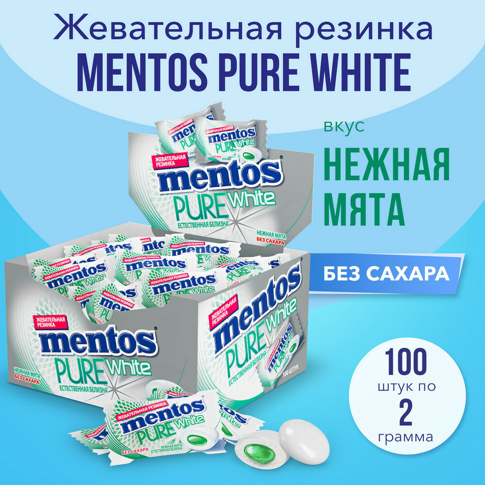Купить Жевательная резинка Mentos Pure White Нежная мята, 100 шт по 2 г