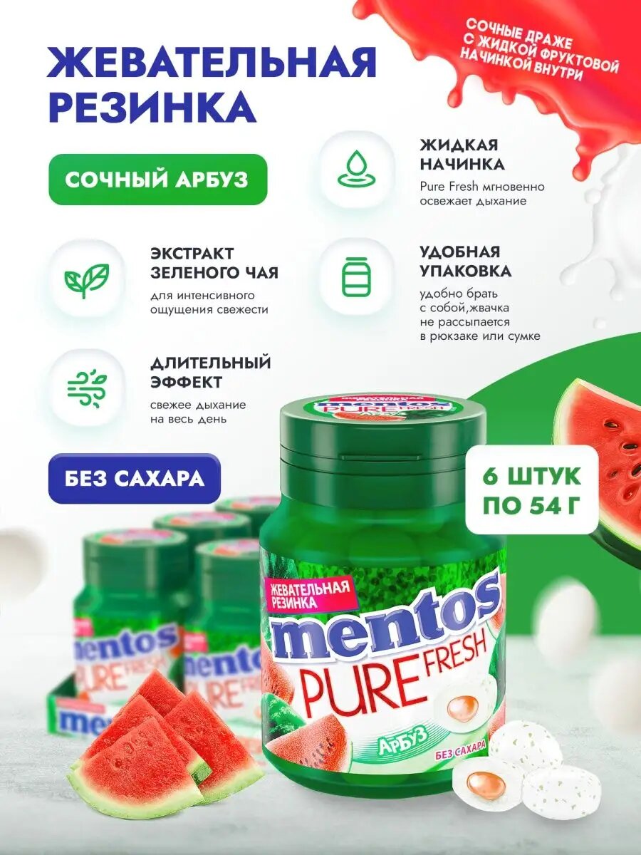 Купить Жевательная резинка Mentos Pure Fresh вкус Арбуз, 6 шт по 54 г
