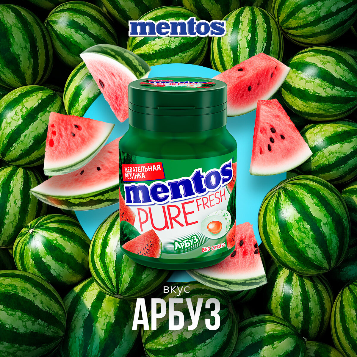 Жевательная резинка Mentos Pure Fresh Арбуз, 100 шт по 2 г