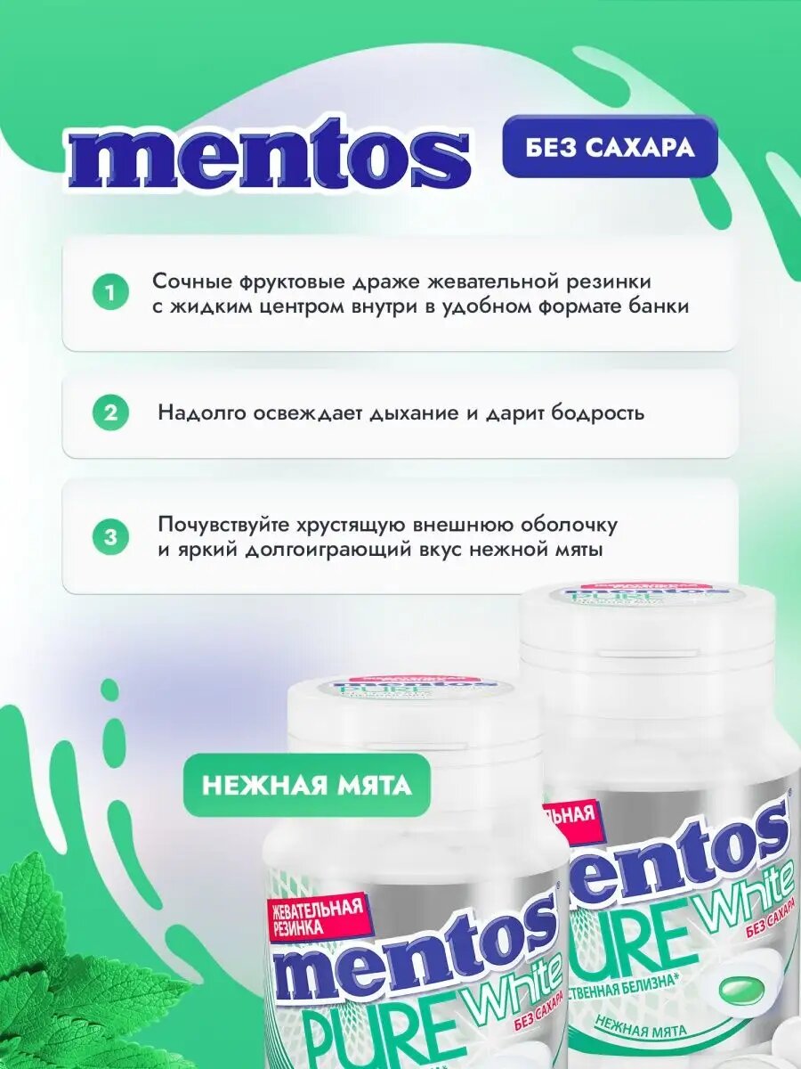 Купить Mentos Pure white Нежная Мята жевательная резинка в банке 54г 6шт