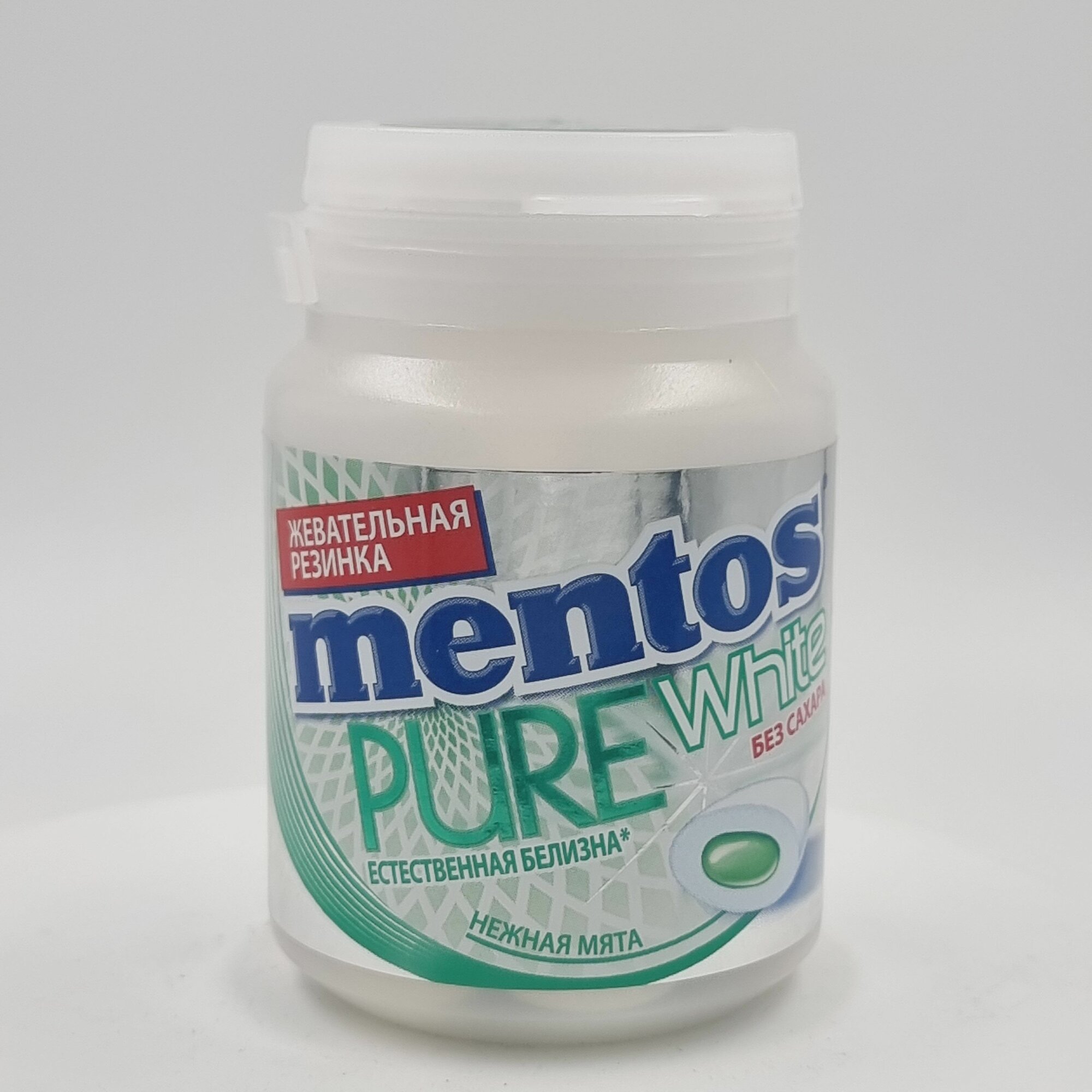 Mentos Pure white Нежная Мята жевательная резинка в банке 54г 6шт