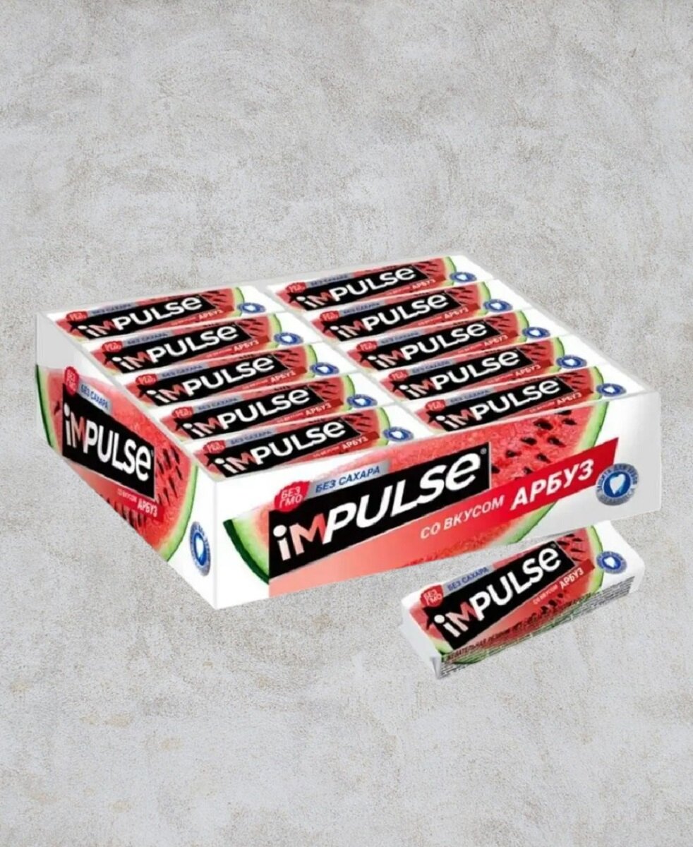 «Impulse», жевательная резинка со вкусом «Арбуз», без сахара, 14 г (упаковка 30 шт.)