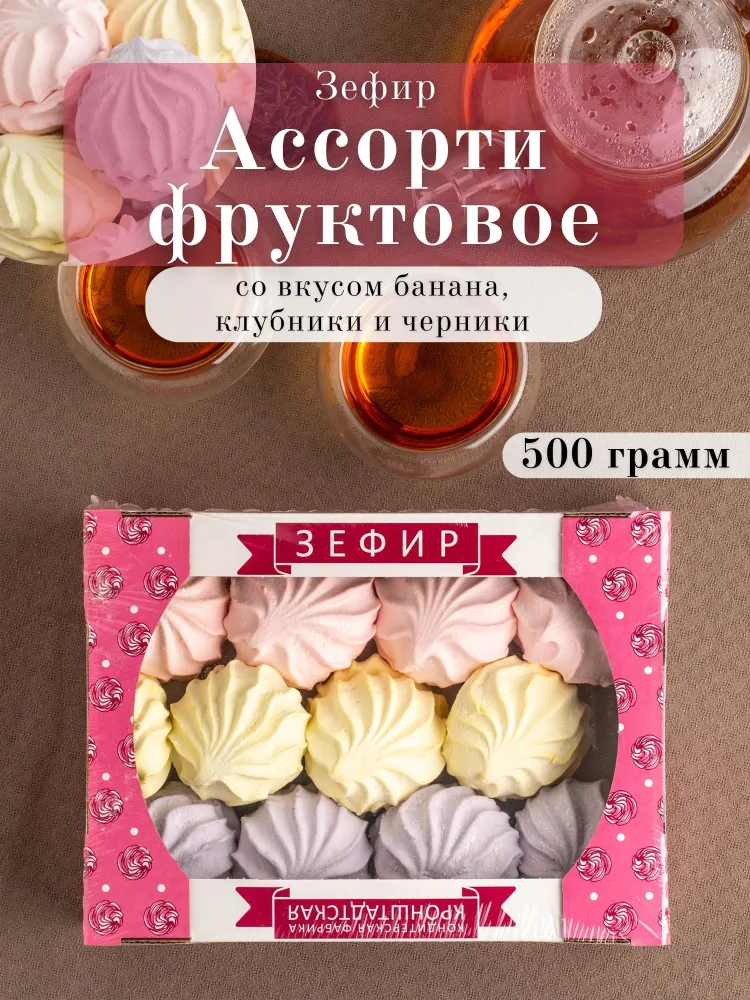 СохранитьЗефир ассорти фруктовое банан, клубника и черника 500 гр, КФ кронштадтская интересное: