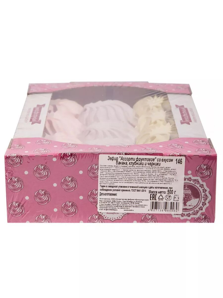 Зефир "Ассорти фруктовое" со вкусом банана, клубники и черники, КФ кронштадтская, 500г х 8шт