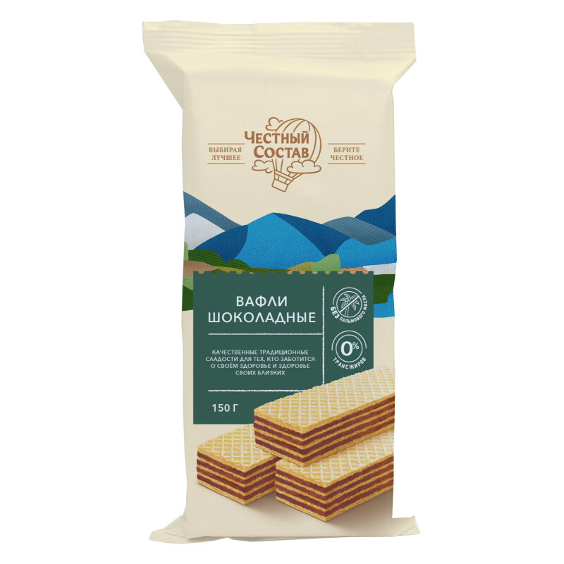 Вафли Шоколадные, ТМ "Честный состав", натуральные, без пальмового масла, 150 гр, упаковка, Пермская Фабрика