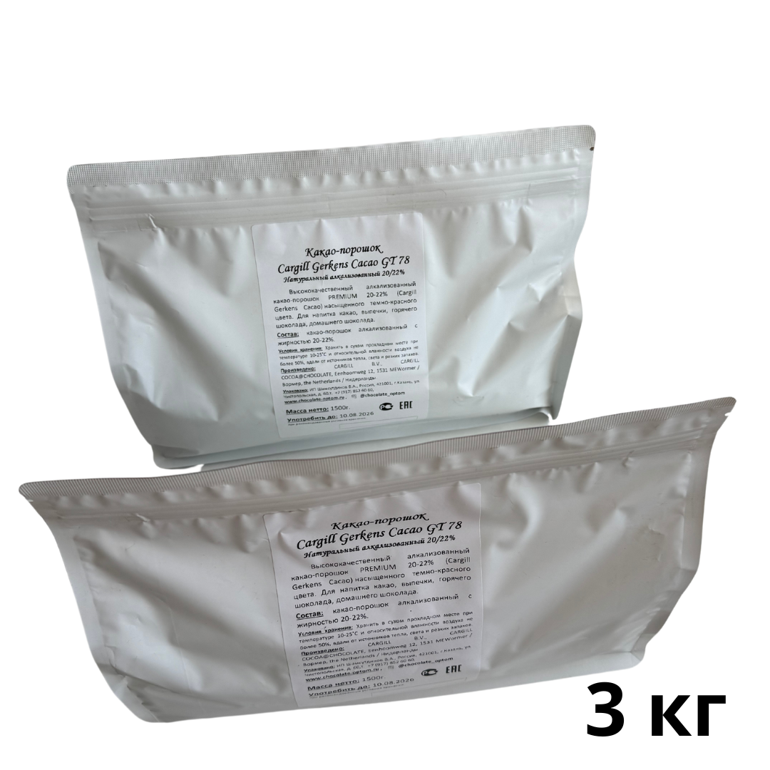 Купить Какао порошок CARGILL для горячего шоколада, жирность 20/22% , натуральный алкализованный 3 кг