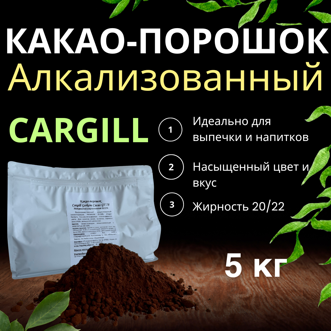 Купить Какао порошок CARGILL для горячего шоколада, жирность 20/22% , натуральный алкализованный 5 кг