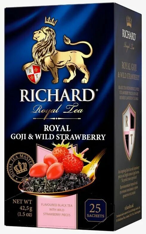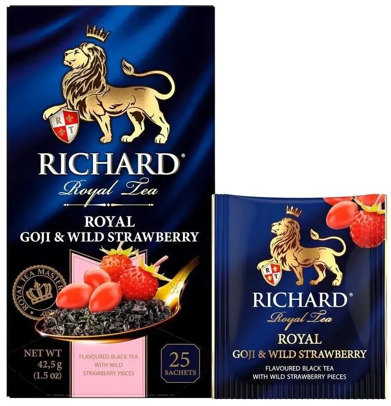 Чай черный Richard Royal Goji & Wild Strawberry с отборными, ароматными ягодами черники, малины и ароматом ежевики 25 пакетиков 2 пачки