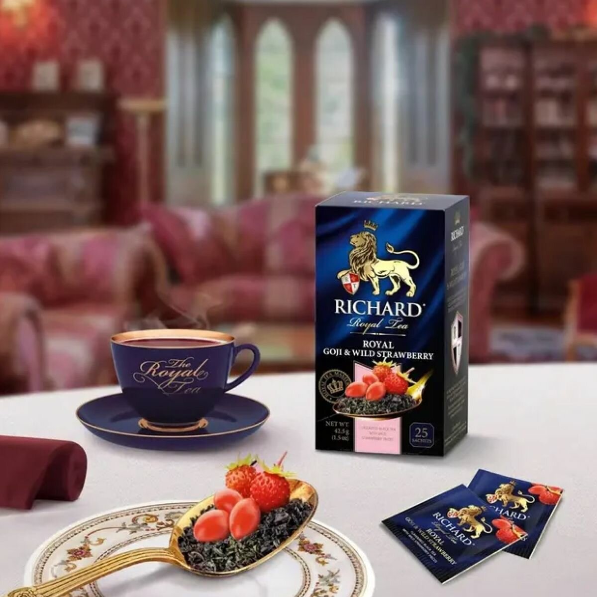 Чай черный "Richard Royal Goji & Wild Strawberry" землянка и ягоды годжи 25 пакетиков 2 упаковки