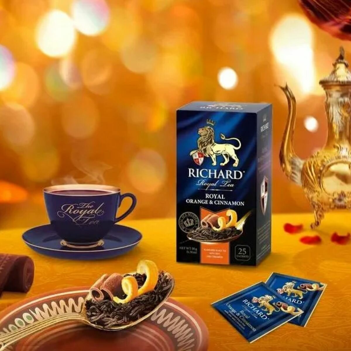 Чай черный с цедрой апельсина и корицей " Richard Royal Orange & Cinnamon " 25 пакетиков 4 упаковки