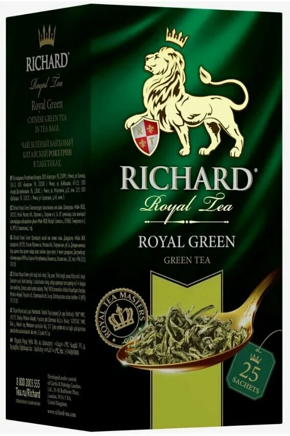 Купить Чай зеленый пакетированный Richard Royal Green (зеленый чай) 25 пакетов - 2 шт