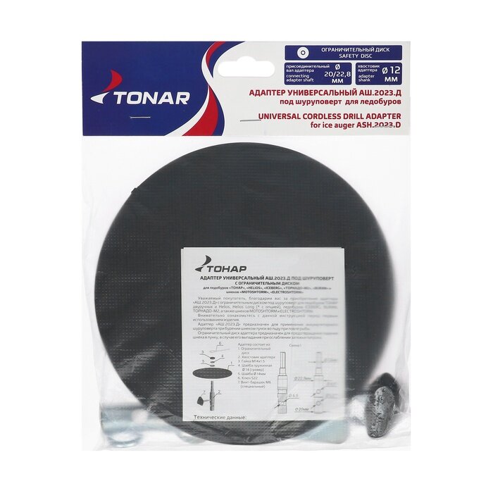 Адаптер шуруповерта для ледобуров АШ.2023.Д с ограничительным диском, посадка 20/23 мм пр-во "Тонар"