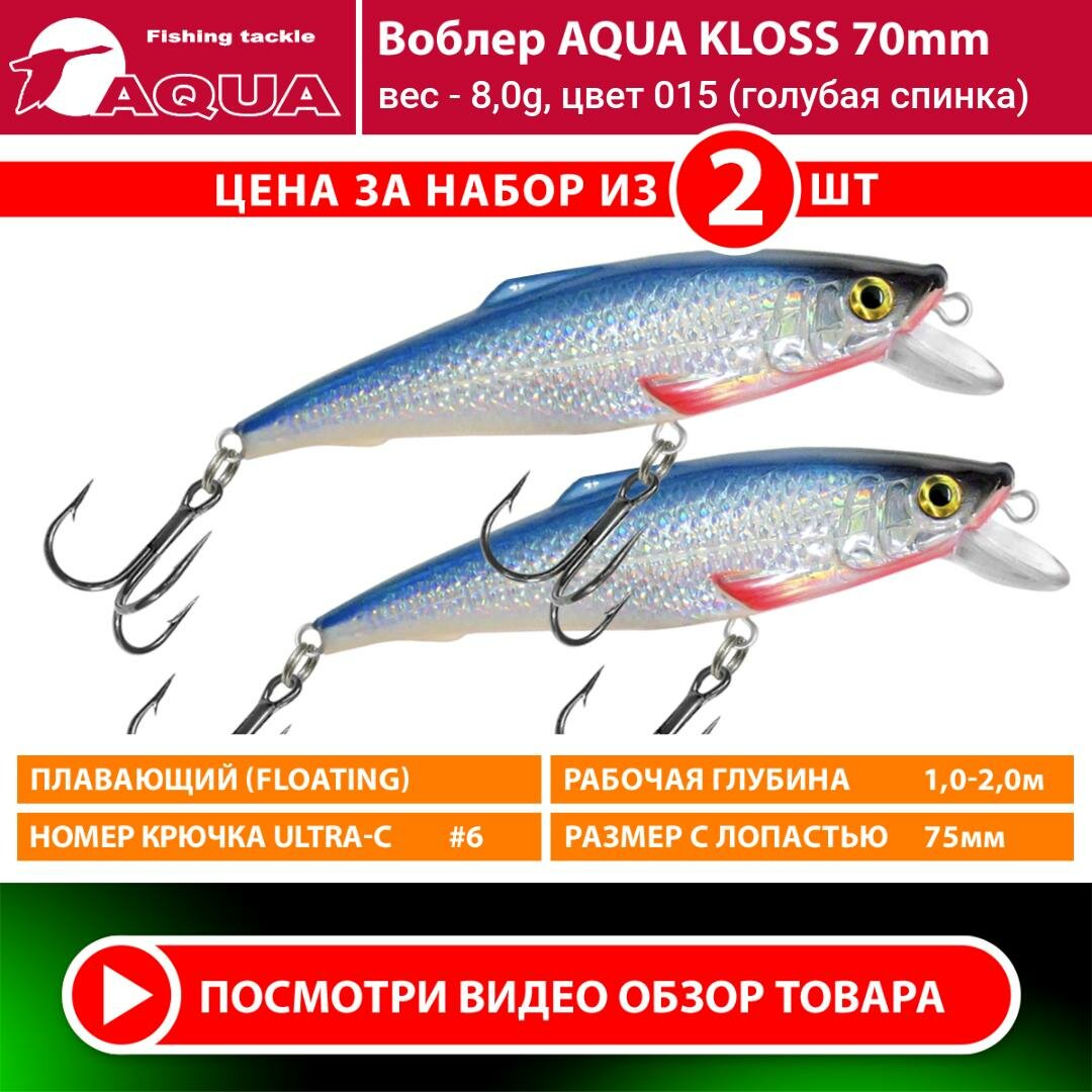 Купить Воблер для рыбалки плавающий AQUA Kloss 70mm 8g заглубление от 1 до 2m цвет 015 2шт