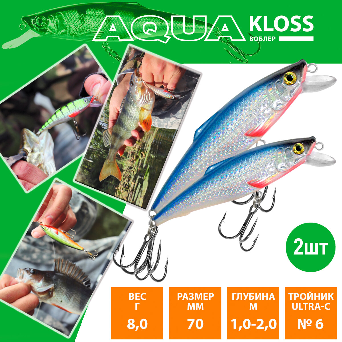 Воблер для рыбалки плавающий AQUA Kloss 70mm 8g заглубление от 1 до 2m цвет 007 2шт
