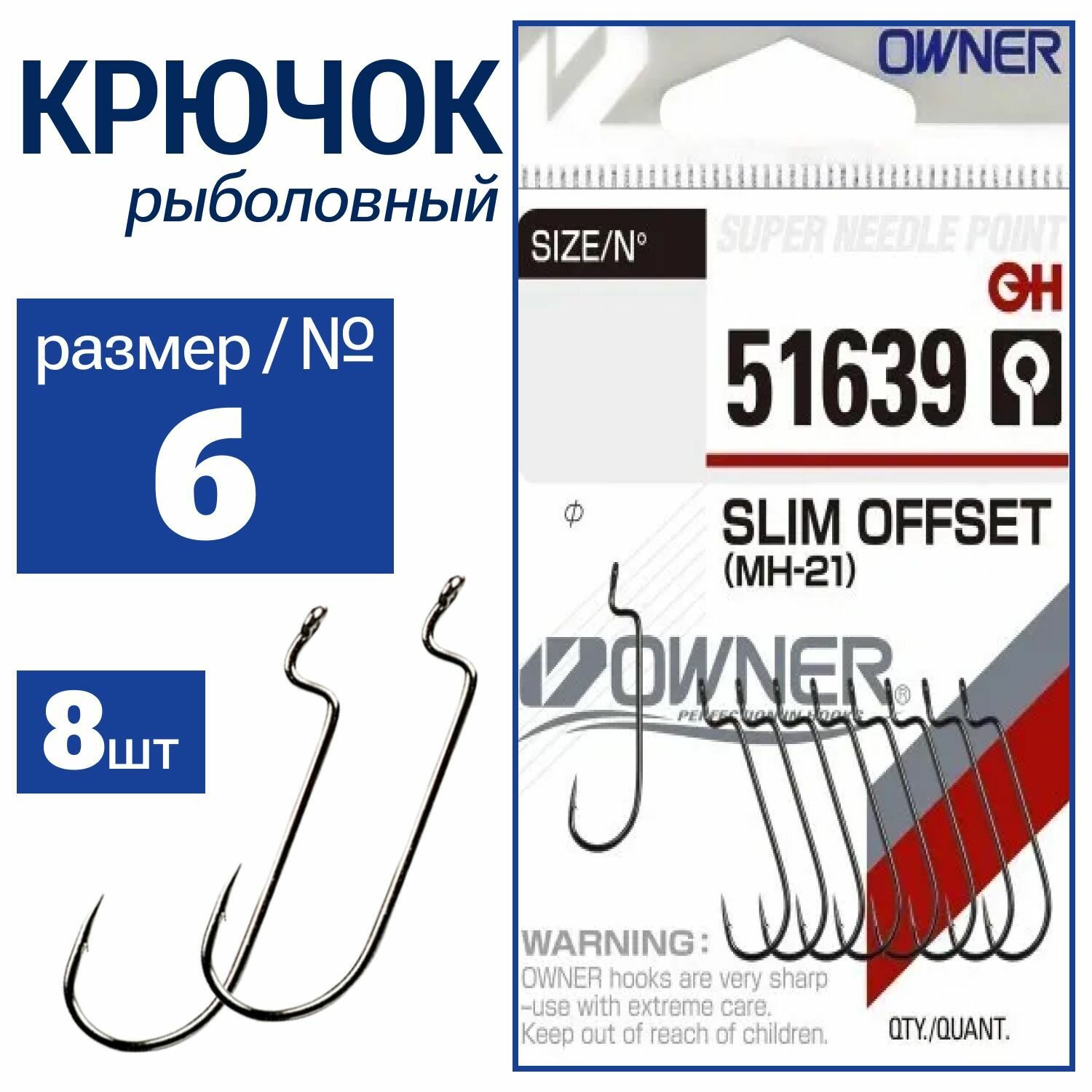 Крючки Owner 51639 Slim Offset (MH-21) #6 (8шт). Офсетные крючки для рыбалки.