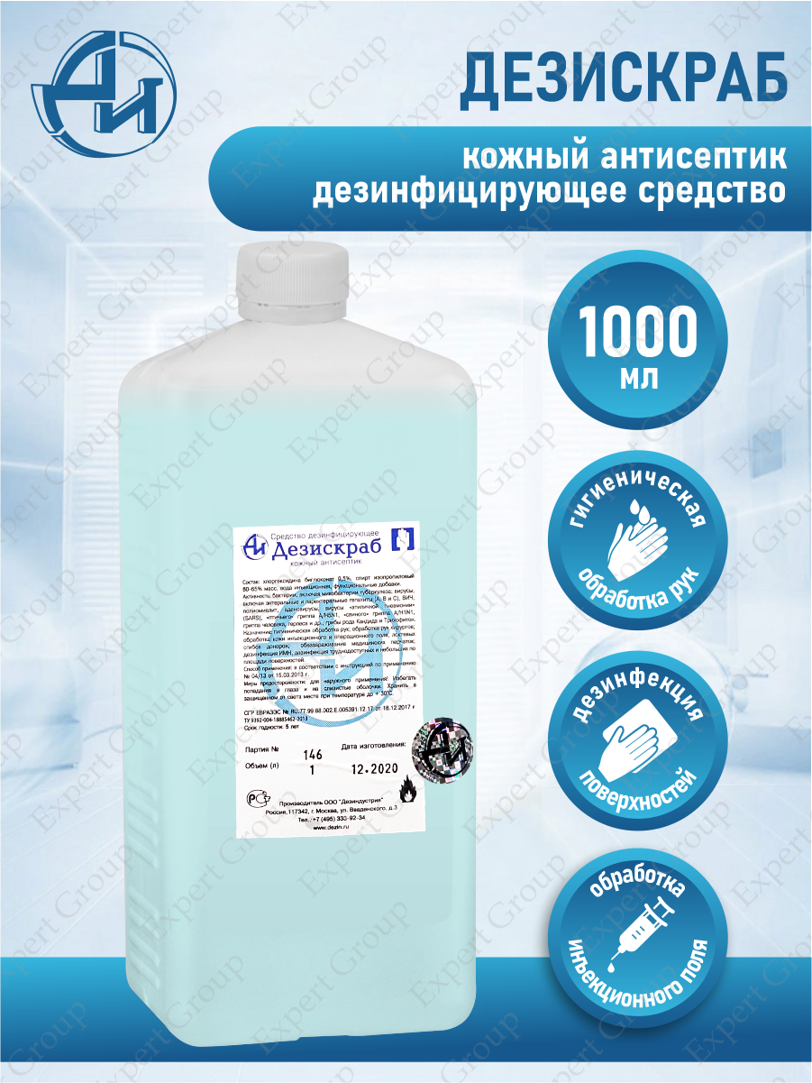 Средство дезинфицирующее кожный антисептик, Дезискраб, 1000 мл, тип крышки: винтовая интересное:
