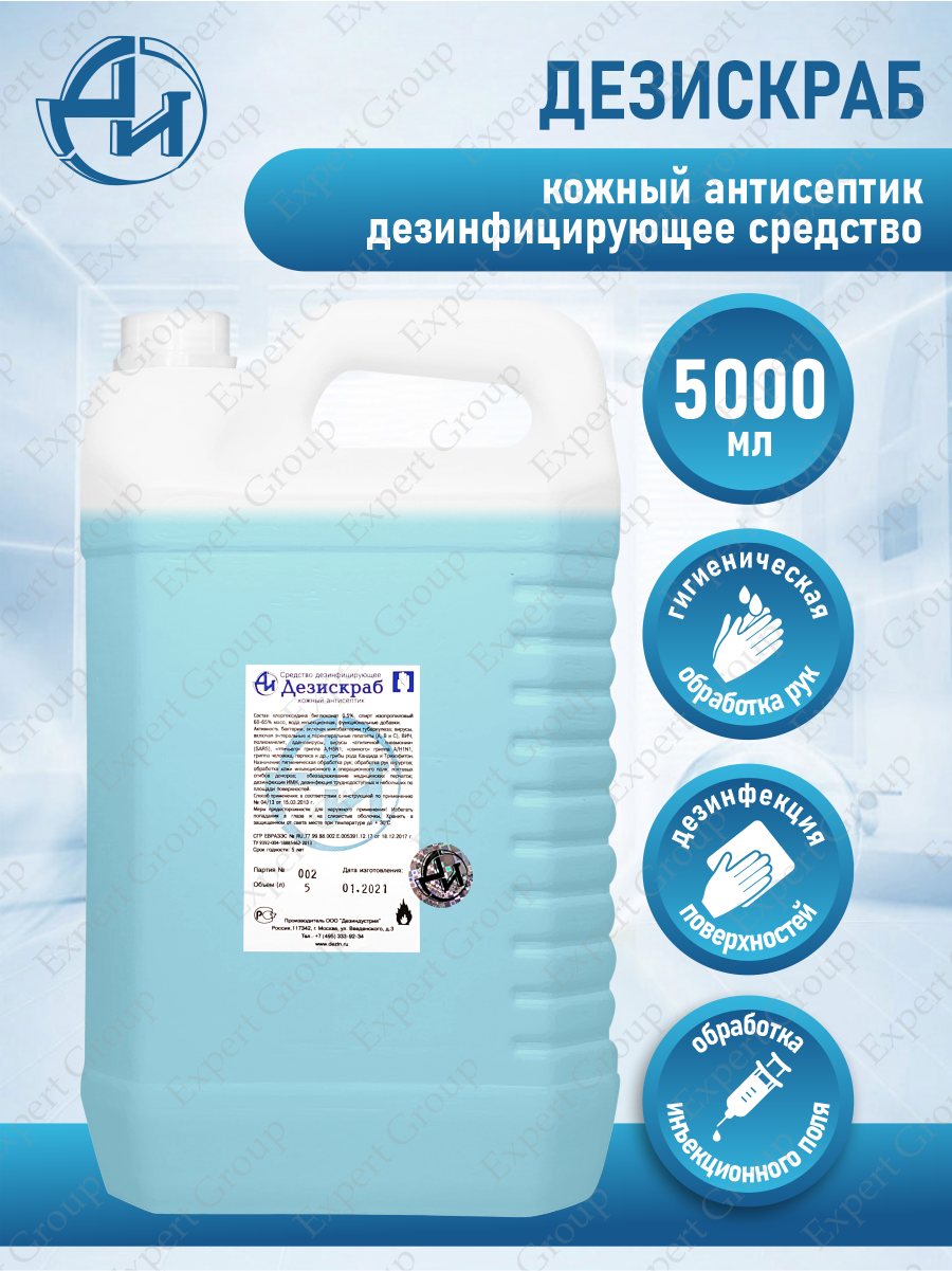 Дезиндустрия cредство дезинфицирующее кожный антисептик, Дезискраб, 5000 мл, тип крышки: винтовая интересное: