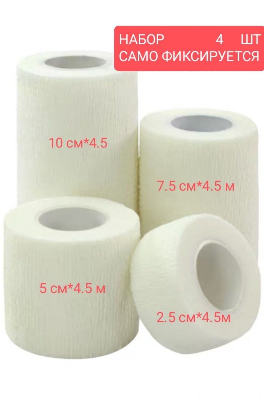 Бинты самофиксирующие набор 4шт, белые интересное: