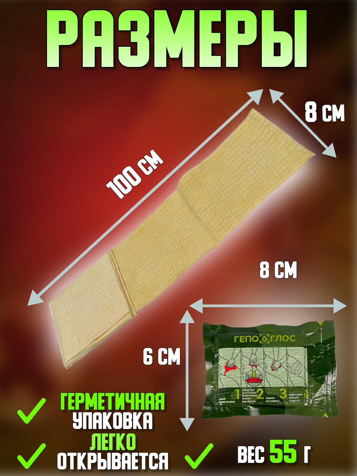 Сохранить(1шт) Гепоглос бинт 8х100 см/хитозан/стерильно/тактическая медицина/повязка на рану/от кровотечений/аптечка/в поход/с собой/карманный/кровь интересное: