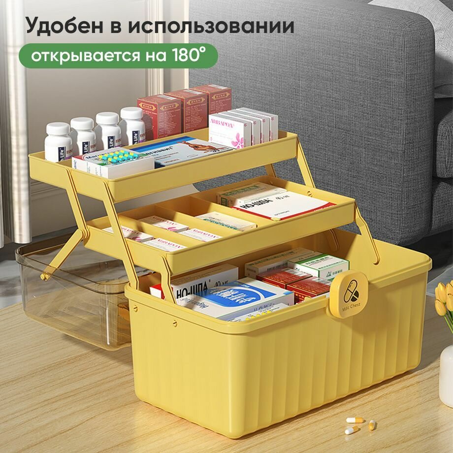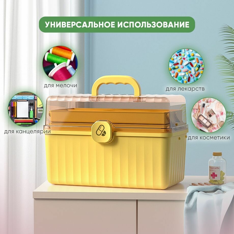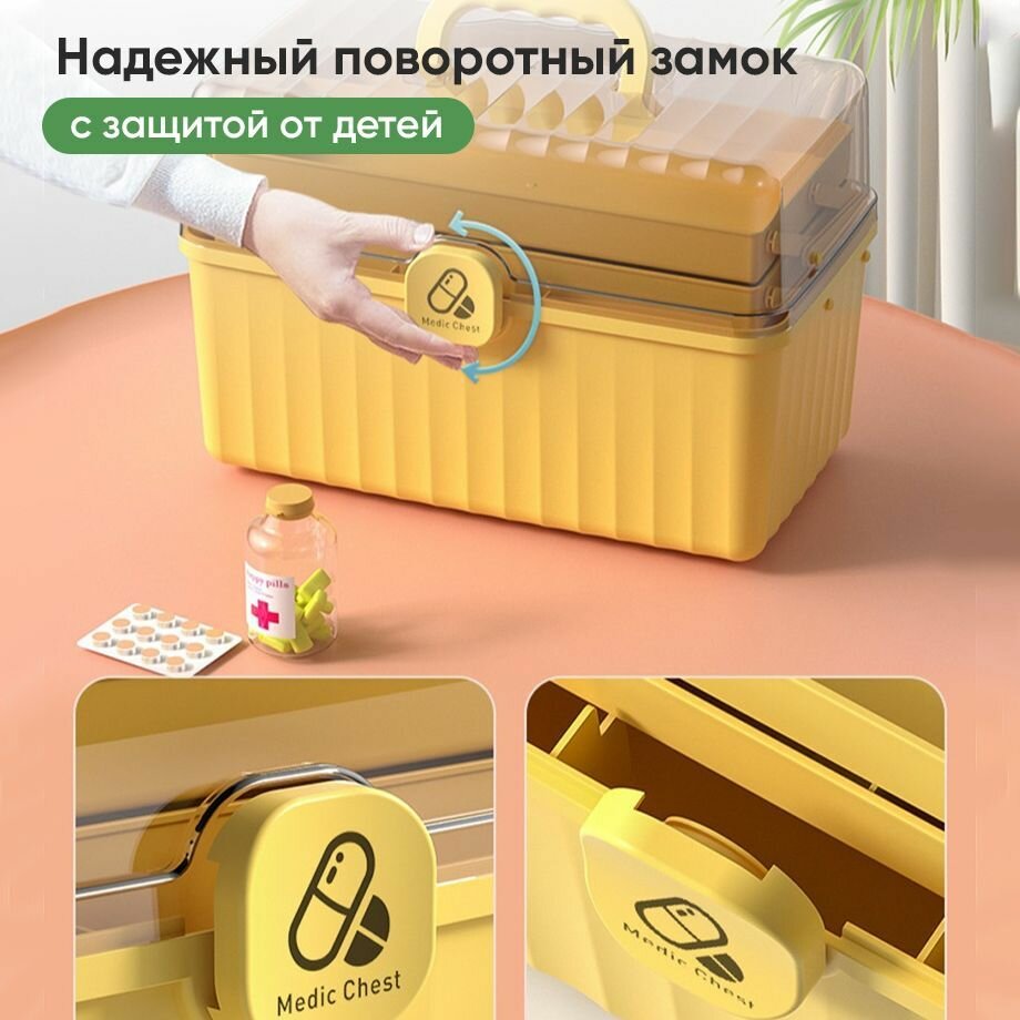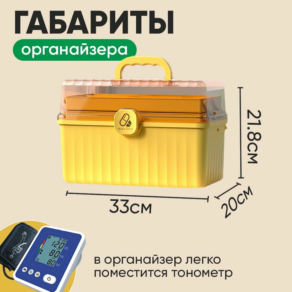 Органайзер для лекарств Oqqi, домашняя аптечка, пластик, желтый, 20х21.8х30 см интересное: