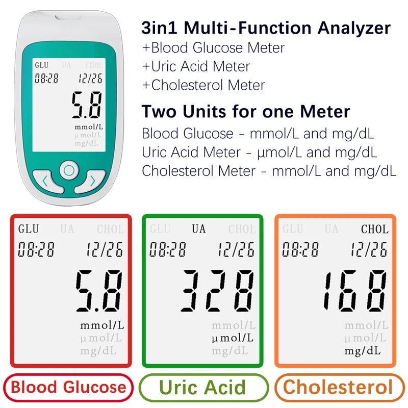 Многофункциональный глюкометр Meawsom для измерения уровня холестерина, 25ur25lan